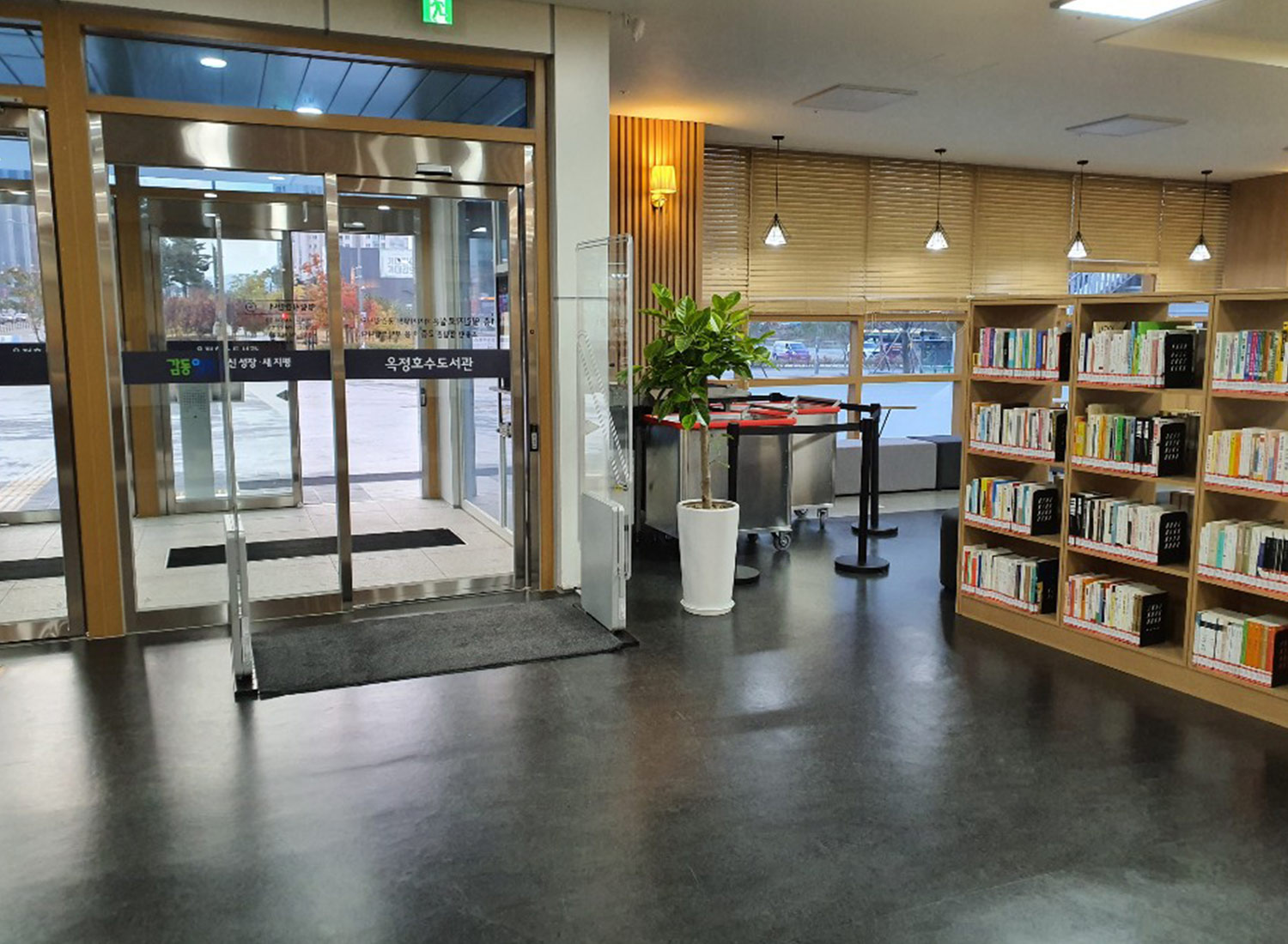 그 첫번째 시도로 보다 열린 공간을 지향, 모든 도서관 인테리어 및 가구를 공공기관 이미지가 아닌 멋진 호수뷰를 보면서 차한잔의 여유와 독서도 즐길 수 있는 핫플레이스 북카페 이미지로 이용자들을 끌어 들였습니다. 옥정호수도서관의 정효숙 팀장님은 도서관 건립 계획전부터 상업적으로 성공한 유명 북카페, 음악카페를 벤치마킹하여 도서관 이미지를 구상하였습니다. “저는 저희 도서관에서 이용자들이 이야기, 먹거리, 분위기를 모두 만족하는 따뜻하고 열린 공간이 되길 바라면서 가구 하나하나 인테리어 세세한곳, 당연히 도서관 자동화장비도 이런 인테리어를 해치지 않기 위해 선택에 신중을 기하였습니다.” 고 덧붙이고 있습니다.