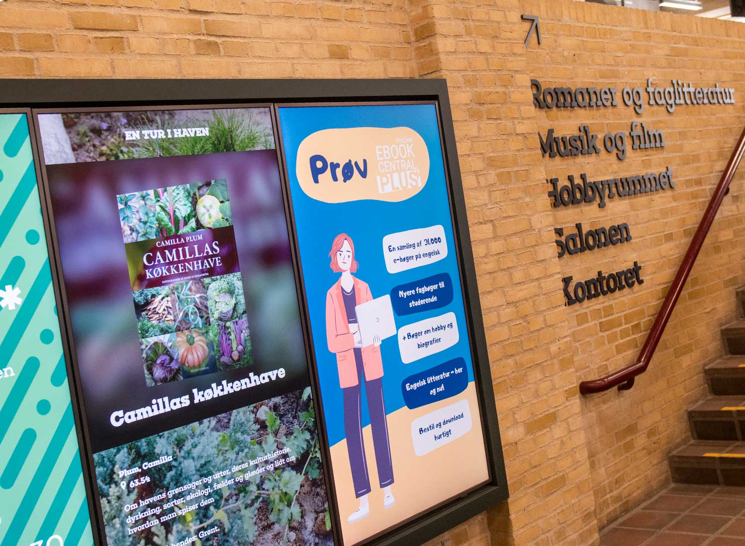 ”En fed funktion for os er, at vi kan genbruge artikler, digitale bogreoler og hvad vi ellers måtte ønske på tværs af skærme. Vi har tre forskellige skærmtyper og kan dermed drage fordel af at genbruge indhold på tværs af skærme både på Hovedbiblioteket og i vores filialer”